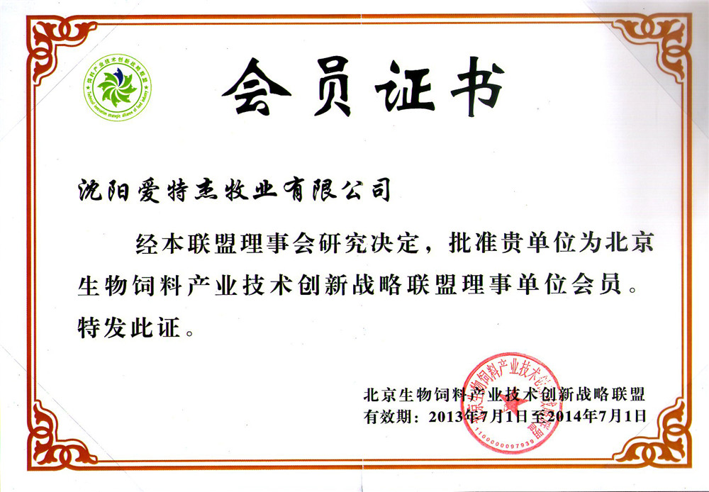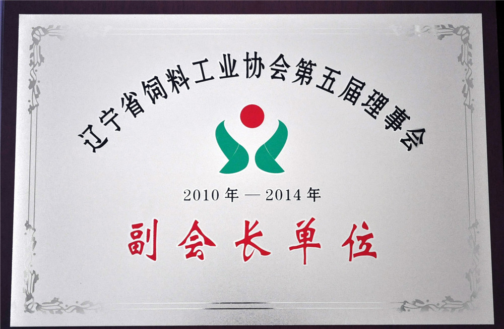 10年遼寧省飼料工業(yè)協(xié)會副會長單位(獎..