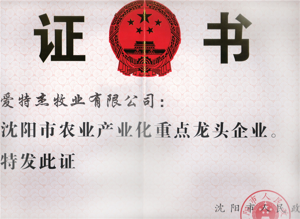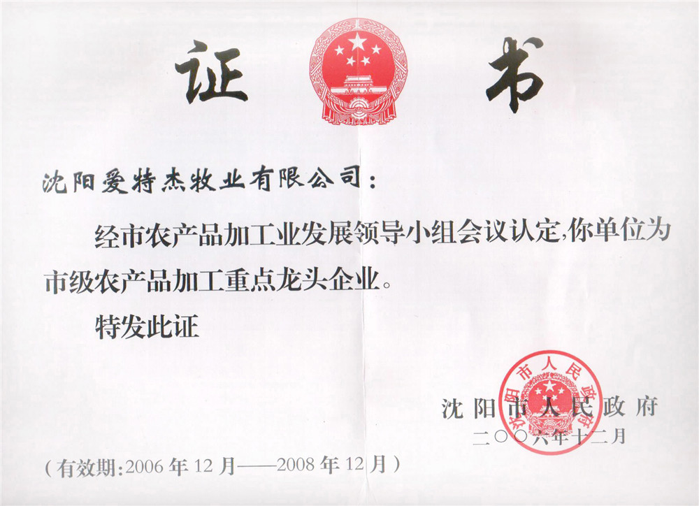 09年省重點龍頭企業(yè)證書